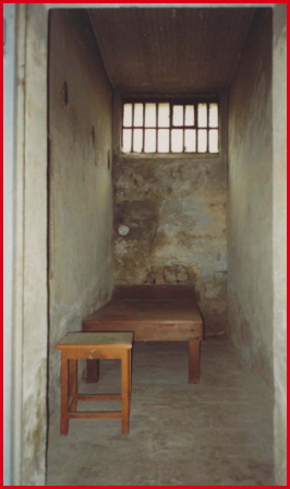 Any infraction of the rules was punished with the utmost severity. It might be spell in the U-Boat (above) a series of dank, airless subterranean cells that were freezing in winter, foetid in summer, where the individual cells there (see below) were even smaller than the standard. For particularly recalcitrant prisoners a spell in the cooler was ordered. This was a nightmare. Two beehive shaped cells, soundproofed and light proofed, totally dark and totally without sound, the walls being of padded rubber. Incarceration in them is beyond describing.