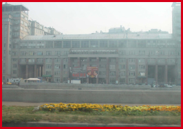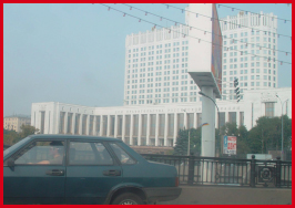 The White House, a Brezhnev era pretentious columned pile seen from the Kutuzovsky Bridge. This is famous as the location for Boris Yeltsin's speech denouncing the plotters in the August coup. It was then the Duma, the parliament of the Russian Socialist Federation. Prior to that it was home to the Moscow Soviet of People's Deputies, a nominal assembly even by the standards of the Soviet Union. The Duma no longer sits there.